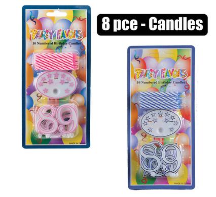 Candles Birthday 8Pce+Numbers Asstd