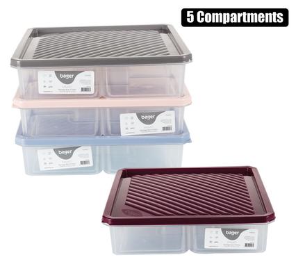 Container Snack Box 5-Div 22Cm Square